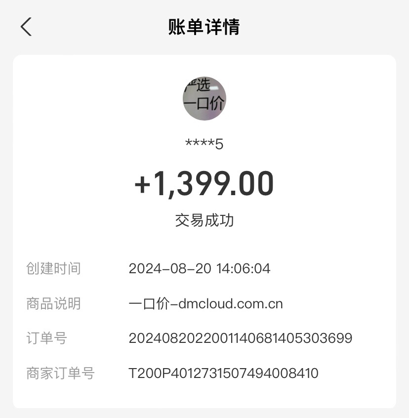 dmcloud.com.cn 一口价1399元交易。